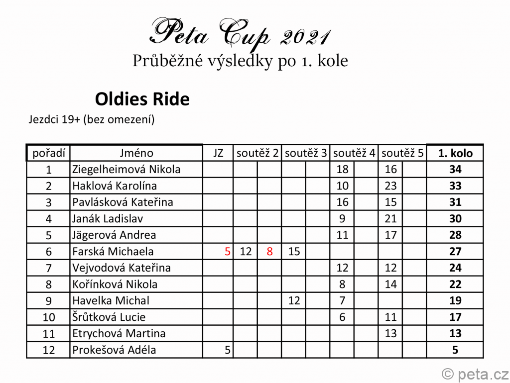 1) Na programu bude „Křížkový parkur do 50 cm (pro děti do 14 let)“, který bude stejně jako jičínská jízda zručnosti oceněn 5 dobrými body do celkového žebříčku jezdců, bez ohledu na výsledek.