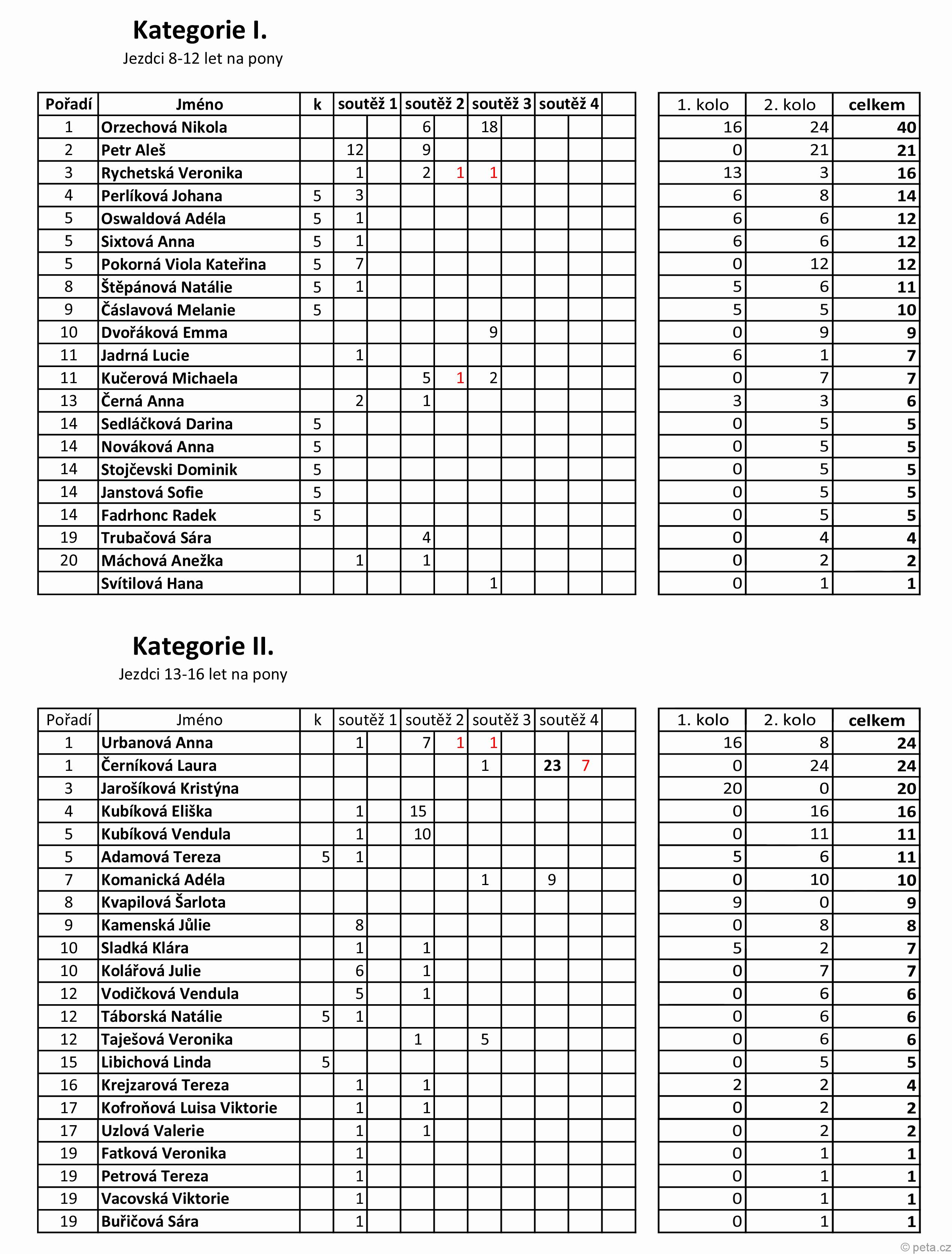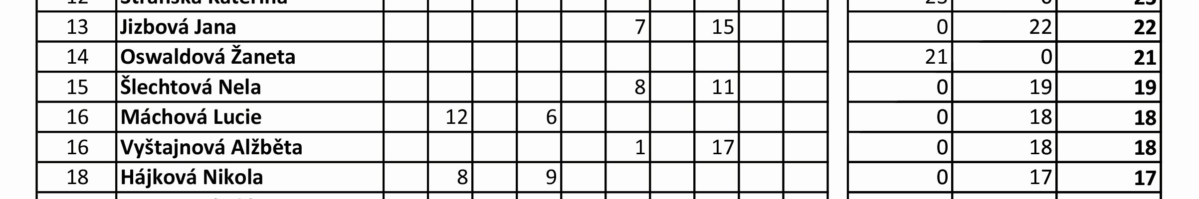 1. místo (bez TB, s odchylkou 0,30) Kubíková Eliška