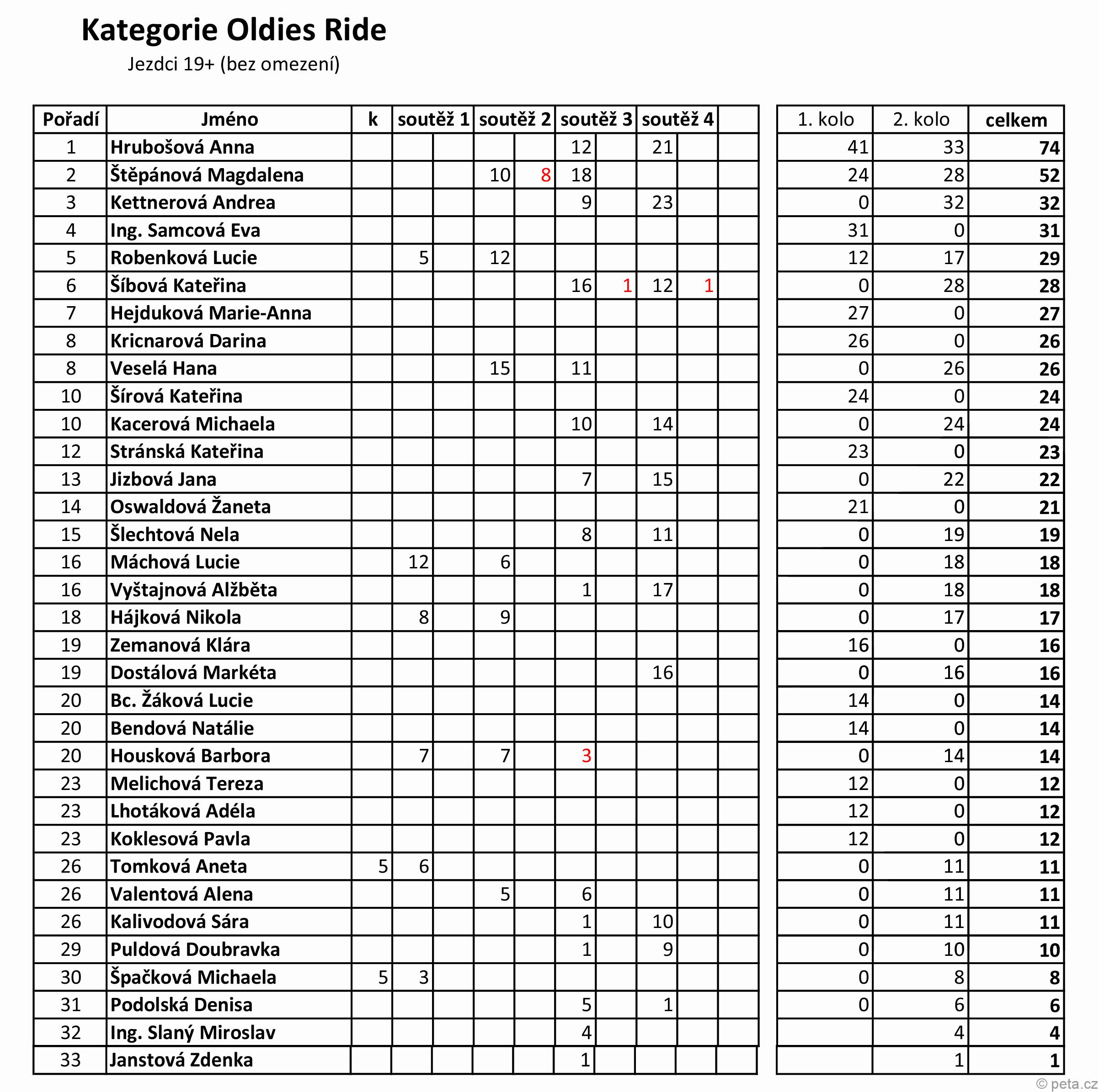 3. místo (bez TB, s odchylkou 0,58) Veselá Hana