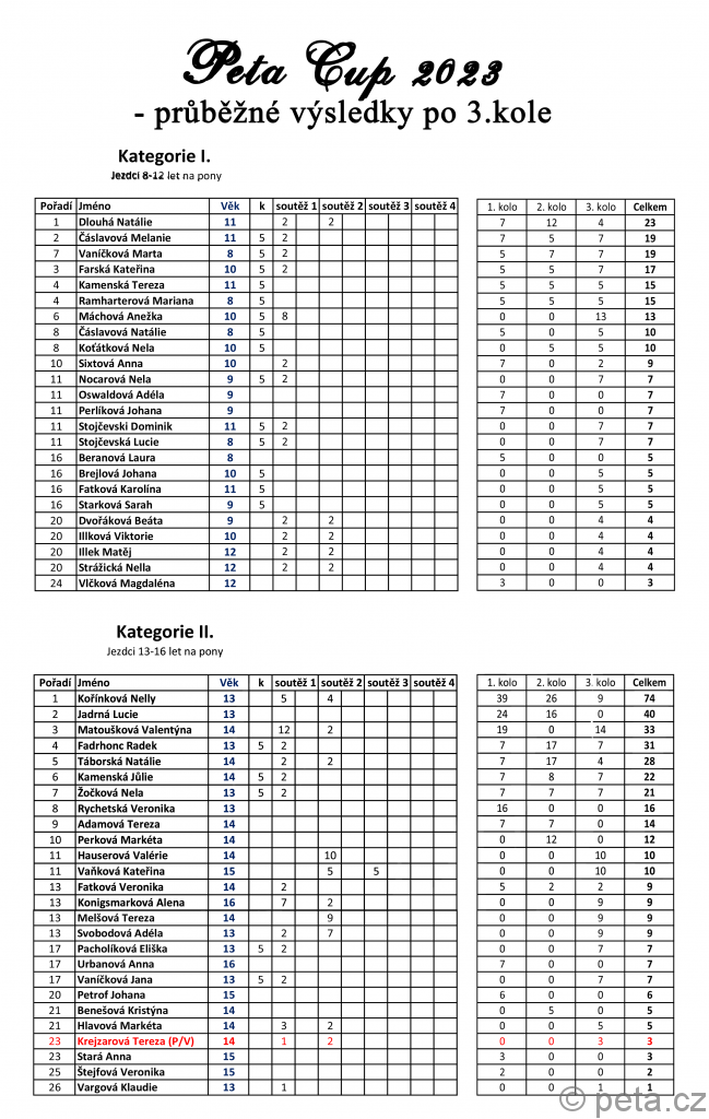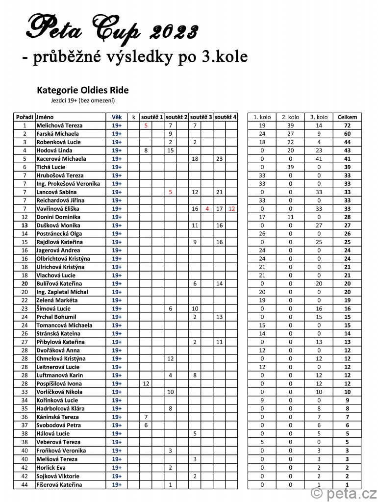 5) pakliže by někdo shledal nesoulad v zařazení jezdce do kategorie, prosím o kontaktování Kveta@peta.cz